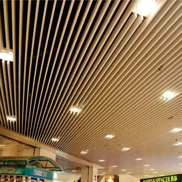 Product Name: Baffle U Shaped Tiles Product Size: P-25 (with widths of 25mm, 75mm, and 125mm) and P-50 (50mm width) Thickness: varying thicknesses and depths, offering versatile options for ceiling customization. Properties: - Graceful and elegant lines create an exquisite curtain effect. - Add a touch of uniqueness to your space, enhancing room atmospheres. - baffles is perfect for integrating lighting, sprinklers, detectors, security systems, and HVAC. - Available in P-25 Series and P-50 Series. - Galvanized steel or Aluminum panels to suit your aesthetic and durability requirements. Brand: knauf by USG Boral, Gyproc, Metalium, Supersil