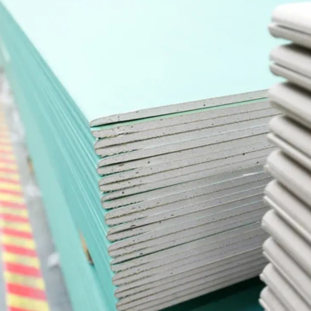 Product Name : MR gypsum board ( Moisture Resistance ) Product Size : 1220mm X 2440mm (4’ X 8’) Product Measurements : per sq.ft Applicability: Bathrooms, Laundry rooms, Storage areas and Wet rooms. Properties: Moisture Protection: MR boards are specifically designed to protect against moisture damage in areas prone to dampness, making them ideal for wet environments. Prevent Mold: MR boards help prevent the growth of mold and mildew, contributing to a healthier indoor environment. Versatile: They can be used for wall linings, ceiling panels, or as a moisture-resistant backing for various finishes Easy Installation: MR boards are easy to cut, handle, and install, making them a practical choice for contractors and DIY enthusiasts. Color: MR boards often have a distinctive green face paper and brown reverse side paper, which helps identify them as moisture-resistant gypsum boards.